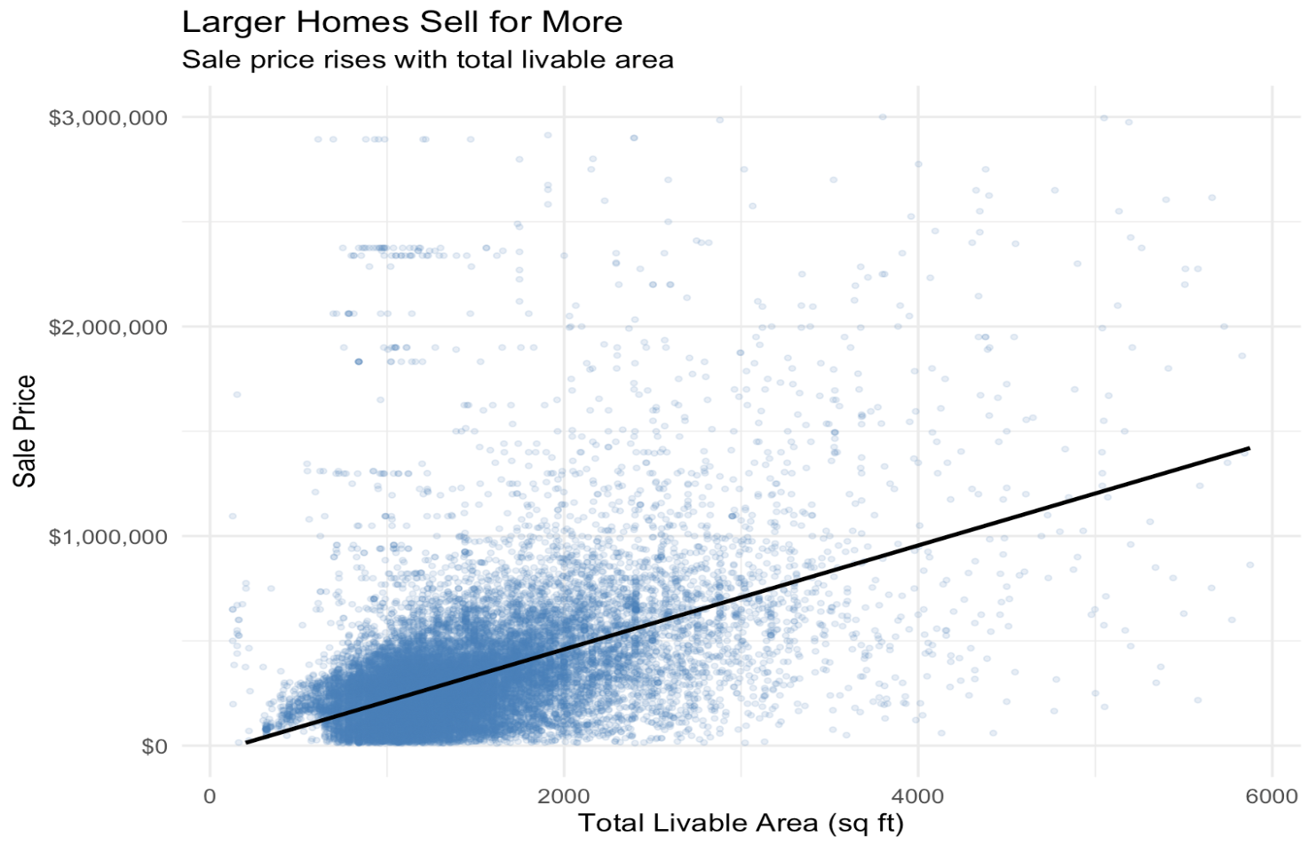 In preliminary data analysis, living space came out as a key driver of housing prices
